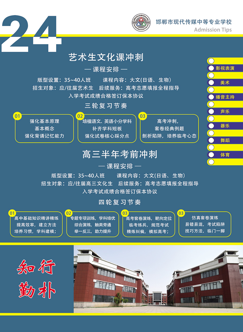邯郸现代传媒学校艺考生、美术生、书法生、体育生文化课集训火热招生中