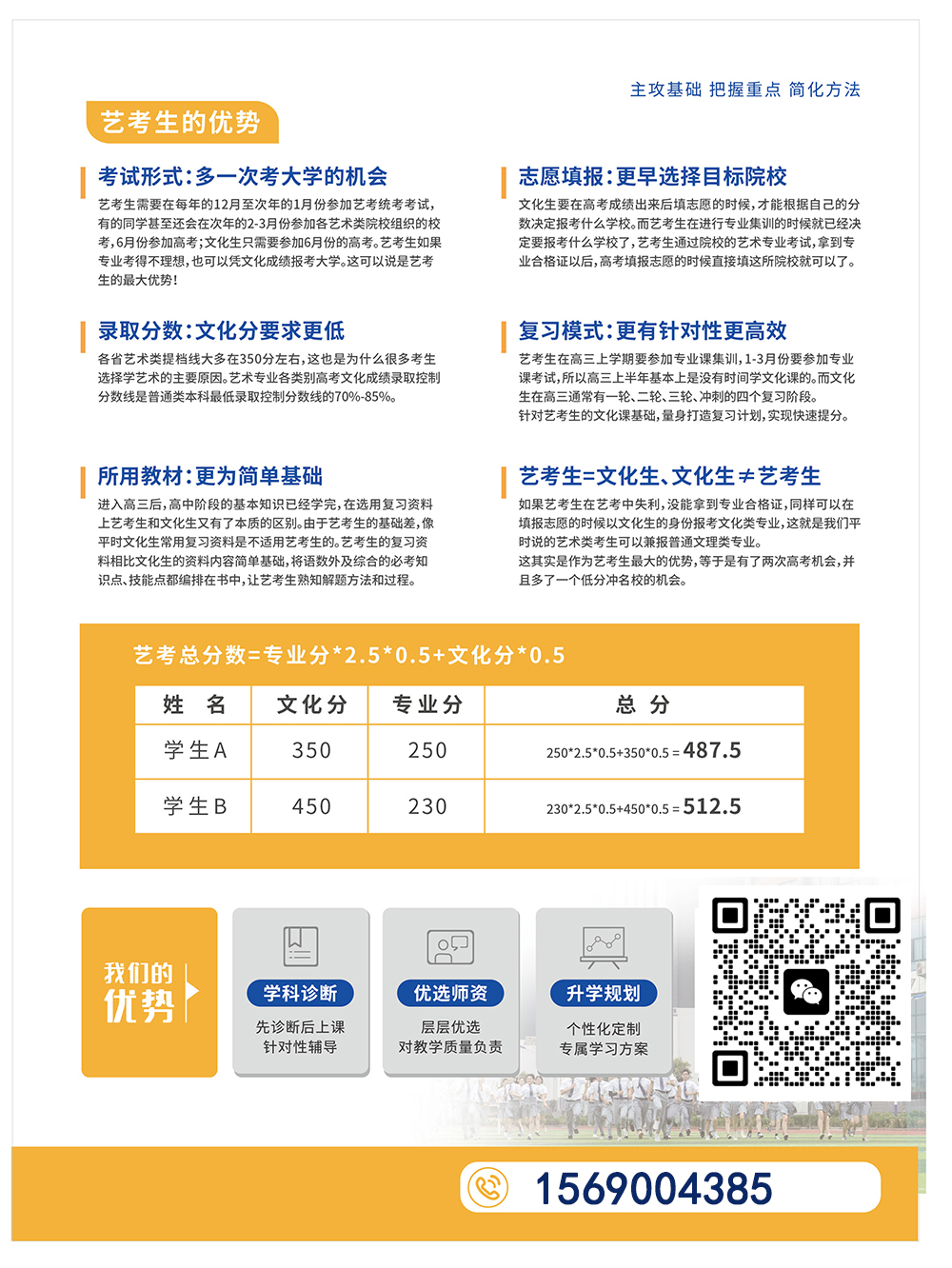 艺考集训班优势 文化课+美术集训同步学习 双管齐下,双手抓,双上岸 封闭式管理 正规学校,独立办学,规范管理让学生专心学习,让家长安心放心 名师云集 汇集集团名师,倾力打造考生提分秘籍,轻松上岸汇集集团名师,助力考生低进高出 性价比高 做最了解艺考生痛点的专业培训,花较少的费用获得丰硕的结果